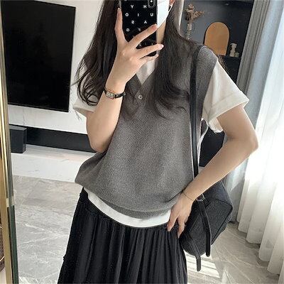 ニットベスト レディース 秋冬 ニット Vネックベスト トップス ショート丈 シンプル ベスト キレイめ レイヤード 重ね着 ベーシック 大人可愛い ノースリーブ カジュアル 可愛い ゆったり 着回し