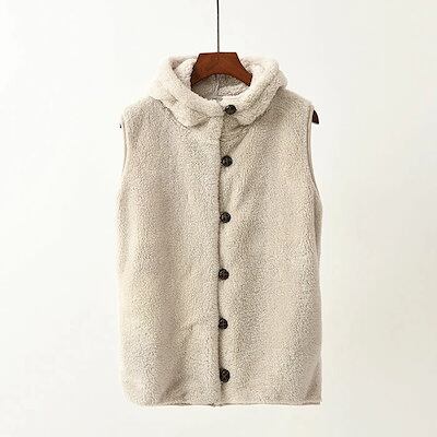 フード付き ボアベスト レディース ファーベスト フード ボア 前開き もこもこ ファーコート ノースリーブ 秋冬 無地 カジュアル お洒落 トップス 羽織り ブラウン オフホワイト グレー 暖かい