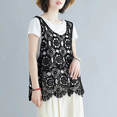 透かし編み ベスト レディース 夏 カーディガン 綿 夏 トップス 涼やか カジュアル レイヤード ニットベスト かぎ編み ノースリーブ コットン サマーニット おしゃれ きれいめ 透け 大人 可愛