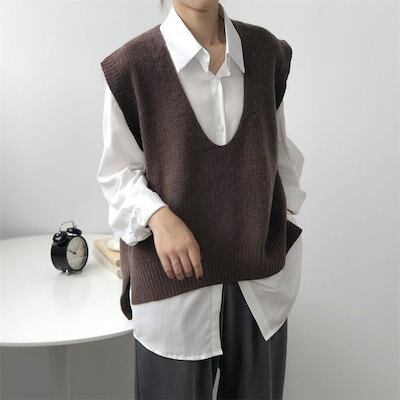 ニットベスト レディース ベスト Uネック ベスト トップス 春 秋 冬 ベスト プルオーバー ノースリーブ 大きいサイズ 秋ベスト レイヤード 重ね着 ゆったり オフィス OL 通勤 カジュアル