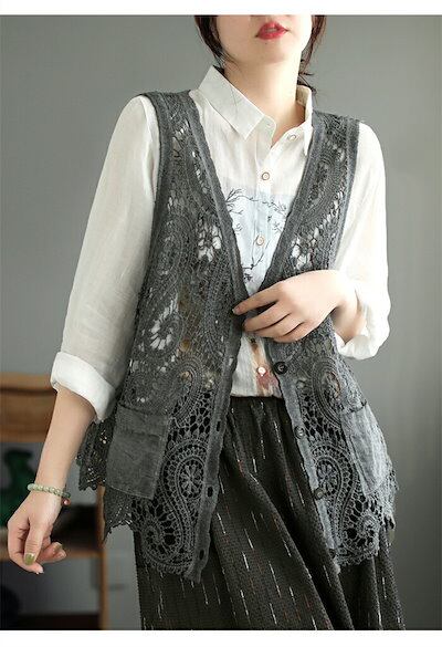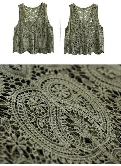 透かし編み ベスト レディース ニットベスト 前開きベスト カーディガン クロシェ編み かぎ編み レース ノースリーブ 森ガール トップス カーディガン ゆったり 重ね着 レイヤード 涼やか お洒落