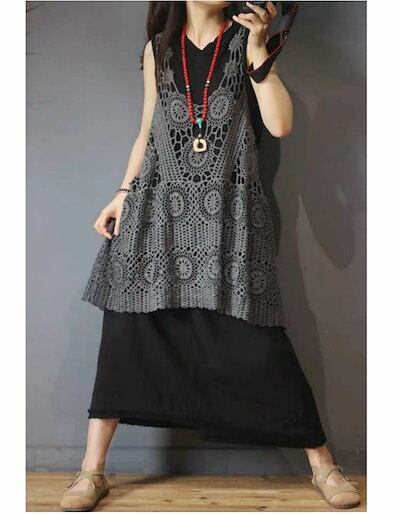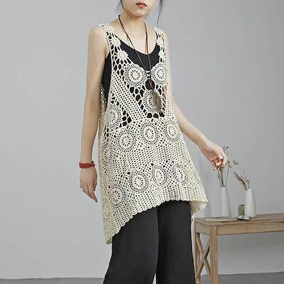 ベスト レディース ロングベスト ワンピース かぎ編み 透かし編み 涼しい 大きいサイズ シンプル おしゃれ ゆったり 体型カバー レイヤード レイヤード風 きれいめ 夏 夏物 夏服 レディース ベー