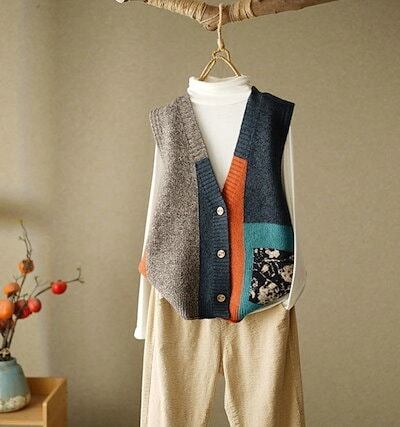 ニットベスト レディース 前開き 秋冬 vネック 大きいサイズ ニット ベスト 花柄 トップス ゆったり キレイめ 重ね着 大人可愛い ノースリーブ カジュアル シンプル 森ガール レトロ ブラウン
