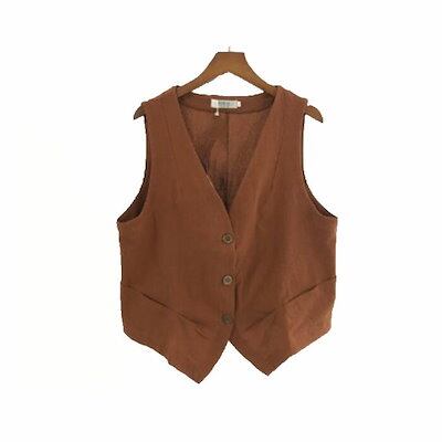 ベスト レディース 前開き ジレ 夏 綿麻風 綿麻ベスト 薄手 夏服 ノースリーブ リネン 無地 カジュアルベスト Vネック トップス ジレベスト 羽織り 袖なし 大きいサイズ ゆったり 前開きベスト
