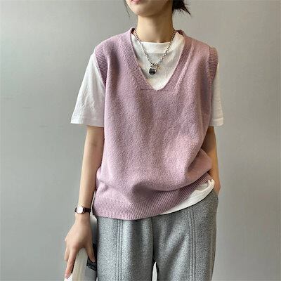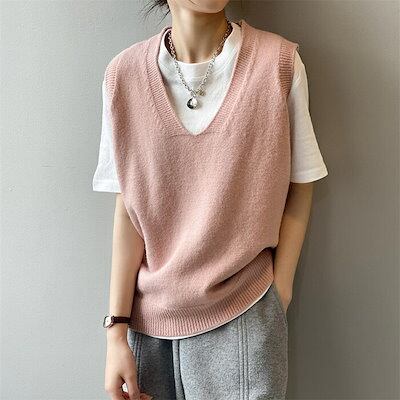 ニットベスト vネック レディース 秋 冬 ニット プルオーバー トップス ニットベスト ショート丈 ノースリーブ 無地 シンプル レイヤード 重ね着 セーター 大きいサイズ カジュアル 大人可愛い