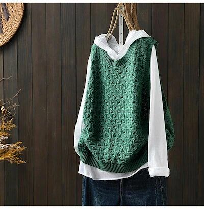 ニットベスト レディース ニット トップス ベスト ノースリーブ 透かし編み クルーネック シンプル レイヤード 重ね着 無地 セーター カジュアル 大人可愛い 女性 お出かけ オシャレ ゆったり 春