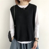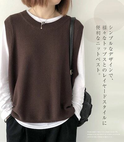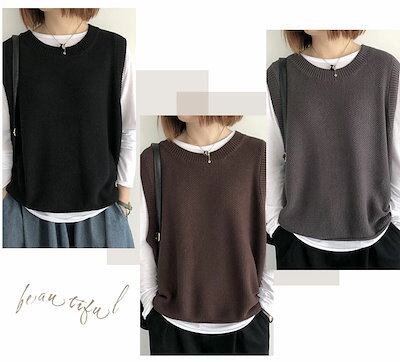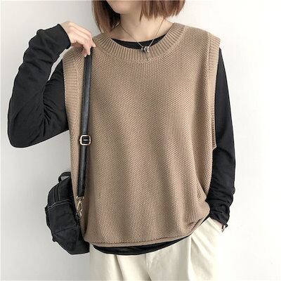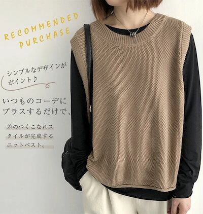 ニットベスト レディース ニット トップス ベスト ノースリーブ クルーネック シンプル レイヤード 重ね着 無地 セーター カジュアル 大人可愛い 女性 お出かけ オシャレ ゆったり 春 秋 冬