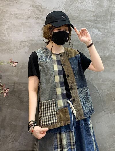 ベスト デニムベスト 切り替え レディース ジレ ベスト デニムジレ ゆったり 大きいサイズ 春夏秋 オリジナル 森ガール きれいめ カジュアル レイヤード 重ね着風 エスニック 薄手 柔らか