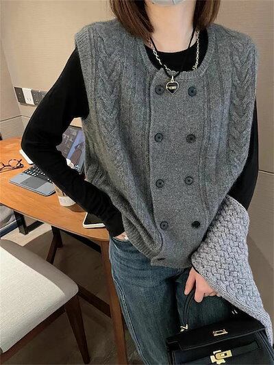 ニットベスト レディース ニット ベスト トップス レディース ニット ベスト トップ トップス 重ね着 ノースリーブ レイヤード風 ニットタンクトップ 韓国風 おしゃれ 大人 かわいい