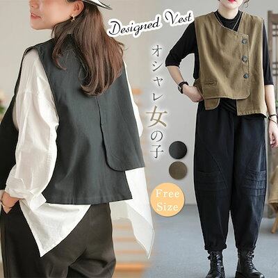 ベスト トップス 綿混 サイドスリット プルオーバー Vネック 羽織 前開きベスト 春 夏 レディース カジュアル 無地 レイヤード綿混ベスト クロシェット きれいめ カジュアル レイヤード フェミニ