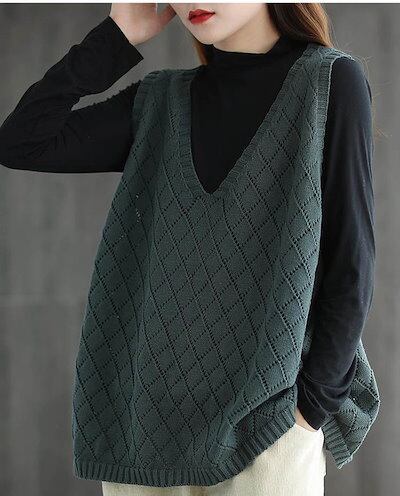 ニット ベスト レディース ニットベスト vネック 無地 ノースリーブ トップス 袖なし 透かし編み 透け メッシュ メッシュニット 重ね着 レイヤ ゆったり シンプル 透け感 大人 カジュアル ナチ