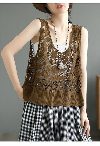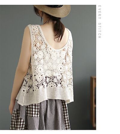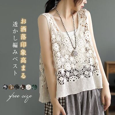 透かし編み ベスト レディース 春 夏 クロシェ編み ニットベスト かぎ編み トップス 涼やか カジュアル レイヤード ニットベスト ノースリーブ サマーニット おしゃれ きれいめ 透け 大人 可愛い