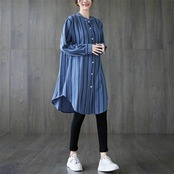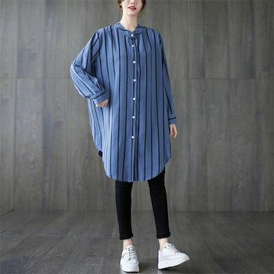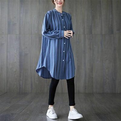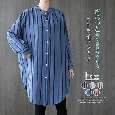 チュニック シャツ ストライプシャツ レディース 長袖 シャツ ストライプチュニック ノーカラー 大人可愛い 通勤 大きいサイズ 春秋 トップス 仕事 キレイめ カジュアル ベーシック 大きいサイズ