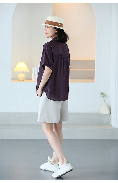 コットン シャツ 半袖 ブラウス レディース シャツブラウス 無地 トップス 薄手 綿麻風 前開き ナチュラル 大人 可愛い 着心地さらり ゆったり 大きいサイズ 体型カバー 事務服 就活 面接 カジ
