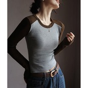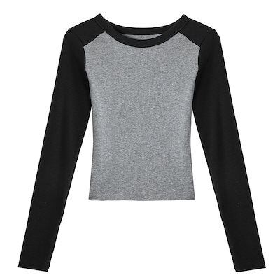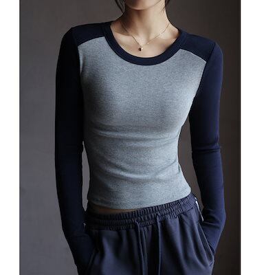ボトムシャツ ラウンドネックカラーコリジョンスリーブボトムシャツレディース秋インナー長袖Tシャツトップス