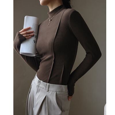 ボトムシャツ ハーフ ハイネック 秋冬 ボトムス シャツ 女性 インナー スリム 長袖