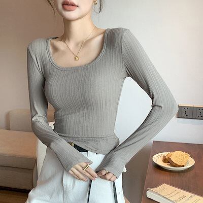 ボトムシャツ 新作 Uネック Tシャツ シャツ レディース ボトムス Tシャツ 長袖 トップス ローネック インナー スリム トップス