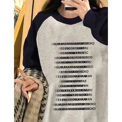 スウェット 衝突スプライシングセーター女性春と秋の新しいレトロな緩い薄いトップス