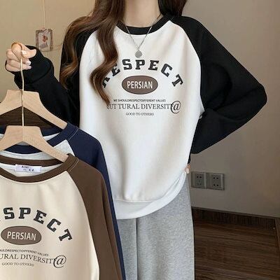 スウェットシャツ春と秋2024新しい緩いカジュアルな長袖薄ボトムシャツトップラウンドネックセーター