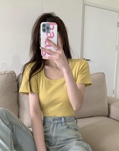 2022春夏新作 レディース 女 無地 丸首 半袖 Tシャツ トップス インナー 8色