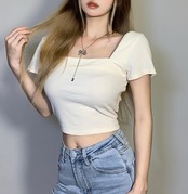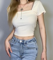 2022春夏新作 レディース 女 無地 半袖 Tシャツ トップス インナー S-L