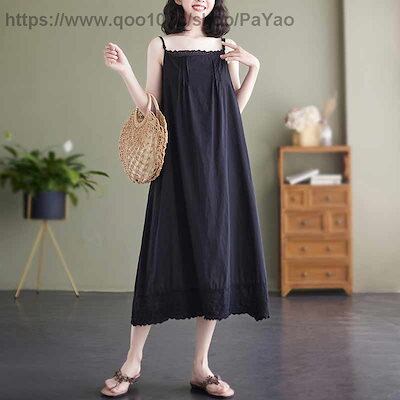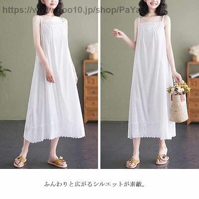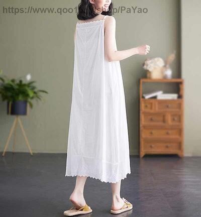 ぺチワンピースレース綿キャミソールペチコートワンピースロング丈インナーコットンノースリーブギャザーピンタックキャミワンピースボートネックaラインキャミワンピ大きいサイズインナーワンピース低身長