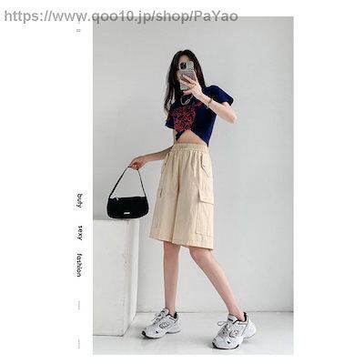 カーゴパンツハーフパンツレディース半パンショートパンツハーフ丈膝丈ズボンパンツボトムスおしゃれカジュアルハイウェスト