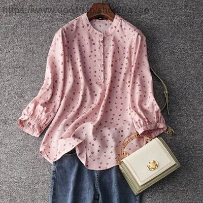 レディースファッショントップスシャツブラウスノーカラー水玉ドットピンクガーリーラブリー五分袖オフィス大きめサイズ個性的大人っぽいかわいいおしゃれ大韓国XL大きいサイズ102030