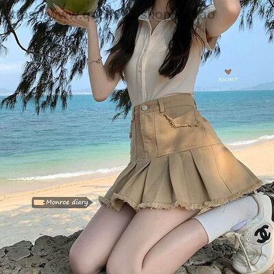 スカートレディースチノスカートハイウエストAラインプリーツスカートボトムスミニスカートスリムタイト細身切り替えデザインかわいいおしゃれかっこいいレトロラブリーキュートガーリー個性的主役級存在感バレンタ