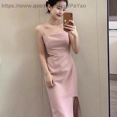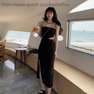 ワンピース個性的カットアウトキャミワンピサイドスリットイレギュラーヘムセクシーカットアウトドレスロングワンピース袖なしノースリーブスリムアシンメトリーおしゃれお洒落かっこいいエキゾチック大人女子XL大