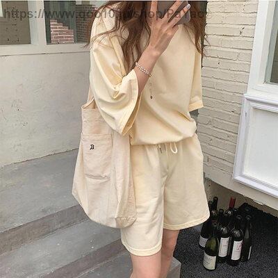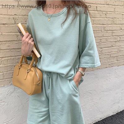 セットアップレディースルームウェア上下セット半袖ハーフパンツ可愛いゆったりカジュアル大きいサイズ部屋着寝巻き夏Tシャツパンツシンプル