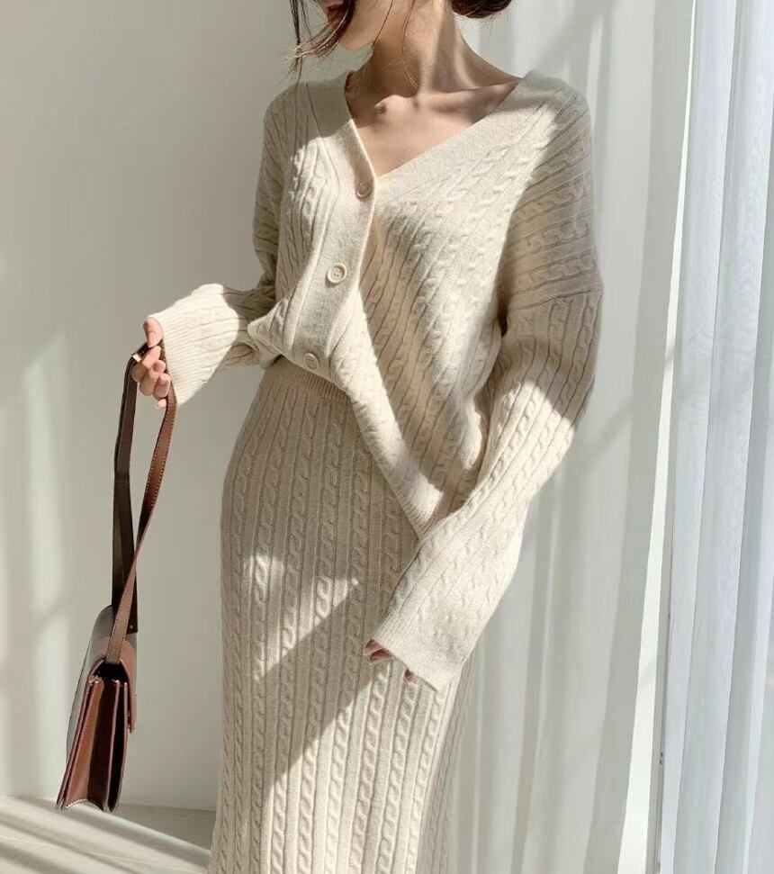 2024年秋冬新作 ニットトップス トップス レディース カーディガン ニットスカート セットアップ 2点セット