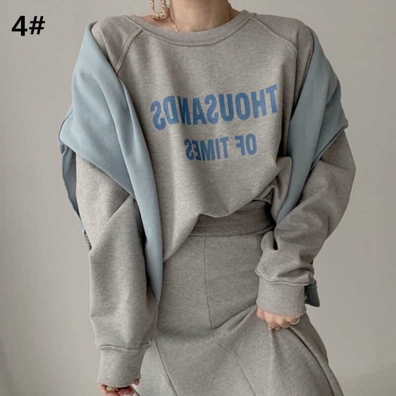 韓国風 プルオーバー トップス レディース 2024年秋冬新作 英字ロゴ ラウンドネック