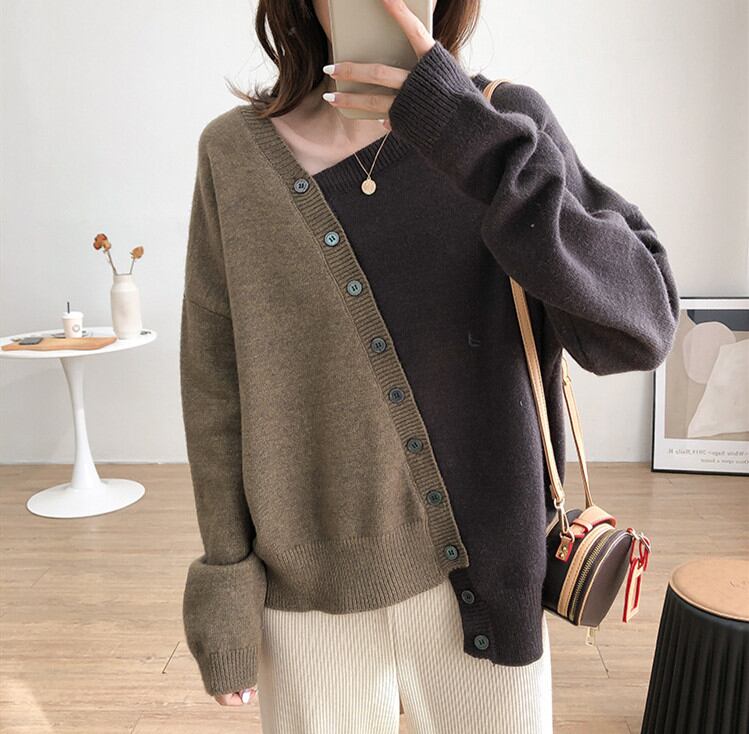 プルオーバー ニットトップス ニット 不規則デザイン 秋冬新作 レディース服 スタイリッシュ