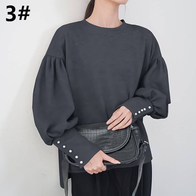 2023秋冬新作 無地 トップス トレーナー 厚手 真珠 ラウンドネック 防寒対策 上品