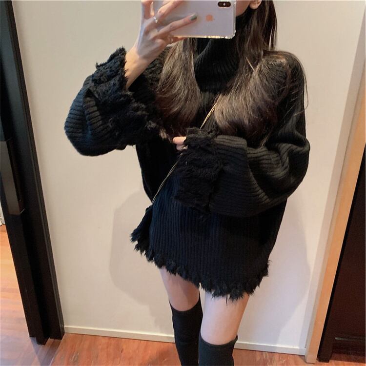 【12月秋冬 新品入荷】 タートルネック 怠惰な風 フリンジ タートルネック ニットトップス セーター