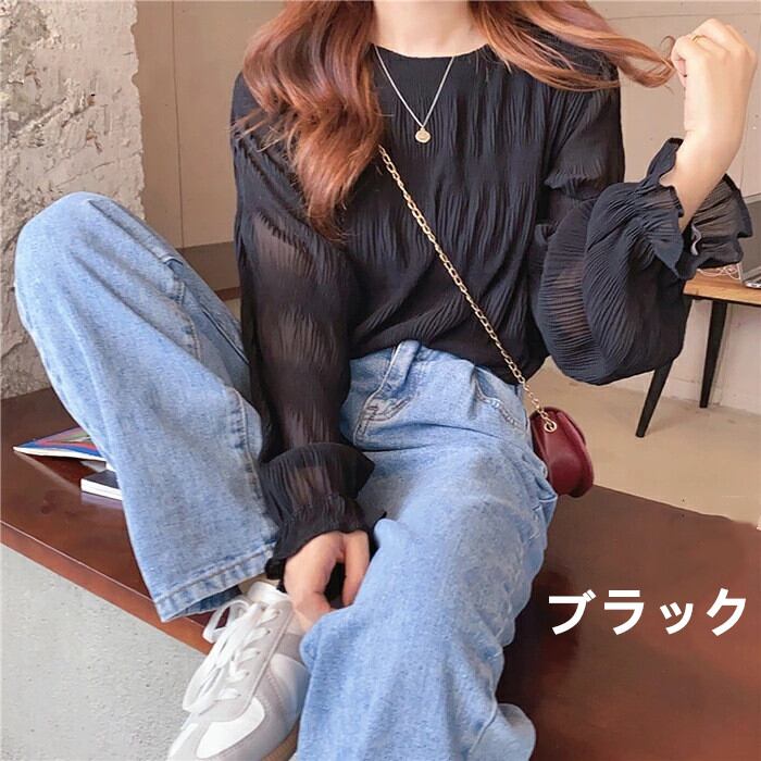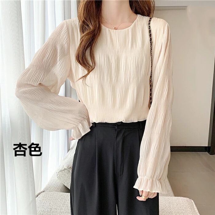 レディースブラウス 大人可愛い シャーリング シフォン ハイネック ブラウス 裏地付き 2024秋冬新作