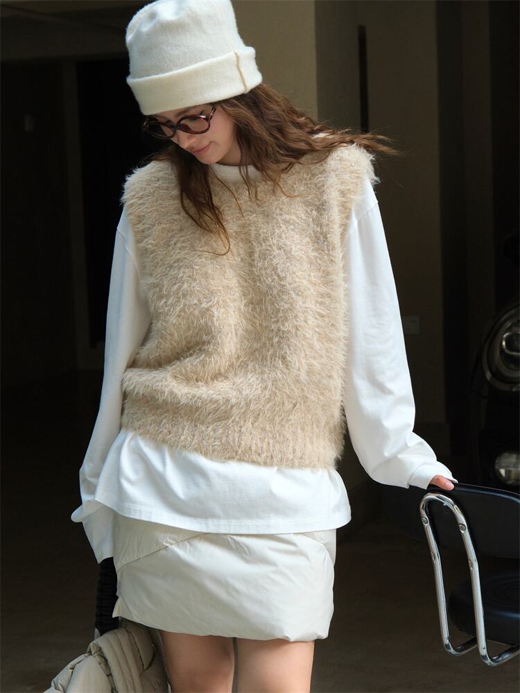 1枚あれば着こなし幅広がる タンクトップ 柔らかい ふわふわ 減齢 上着 ベスト デザインセンス 秋冬