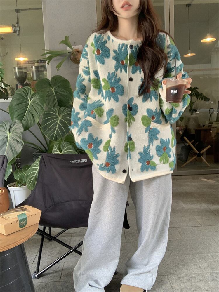 すっきり美人見え 2024秋冬 厚手 ゆったりする ジャカード セーター 牧歌的なスタイル カーディガン