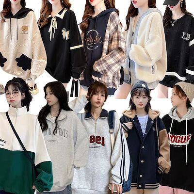2024秋冬新入荷韓国 パーカー/韓国ファッション春服夏服可?原宿BF風男女兼用/スウェット/長袖レディースTシャツ/厚手裏起毛パーカー/トレーナー/ルームウェア/大きいサイズ レディース/