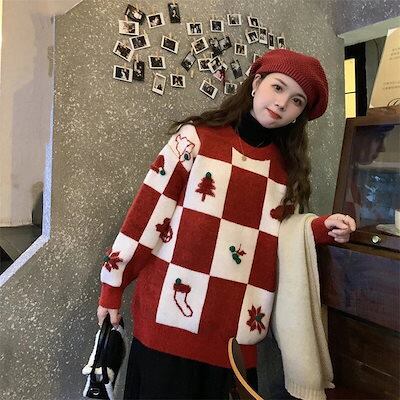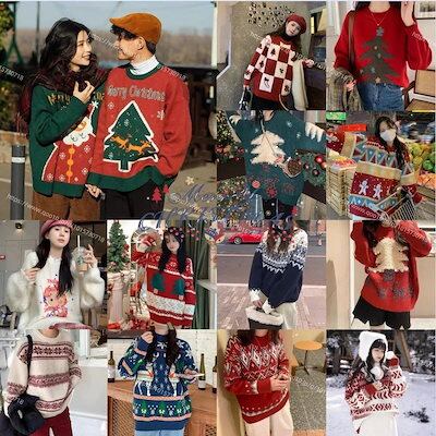 【3日出荷】人気 新作 クリスマス セーター ト レディース ニット トップス 長袖 クリスマスプレゼント 秋冬新作 カップルクリスマスセーター クリスマスツリー/サンタコスプレ