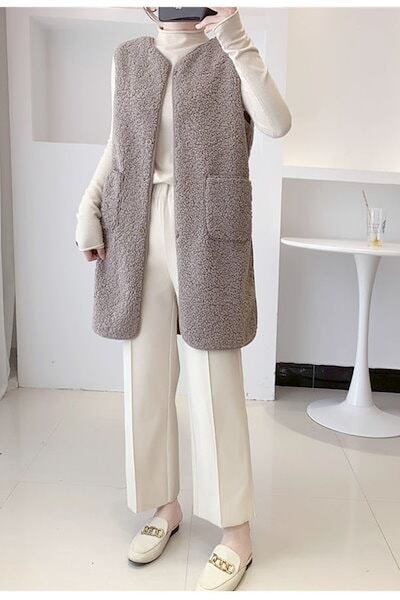 ロングベスト レディース 秋 冬 ミドル丈 イミテーション羊毛 ベスト ファッション 新作 ウエスタン トレンディ レディース コート