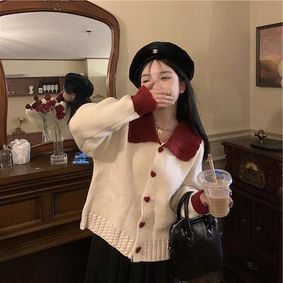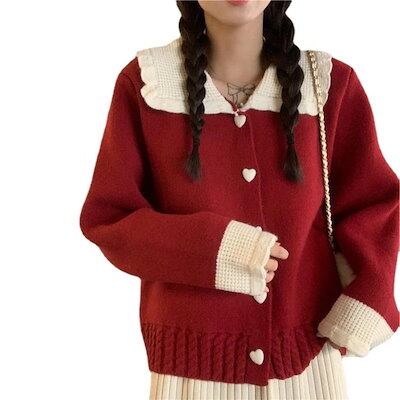 クリスマスセーター ニットトップス 秋冬 セーター 赤 襟 衝突シックな ニット レディースファッション セーター