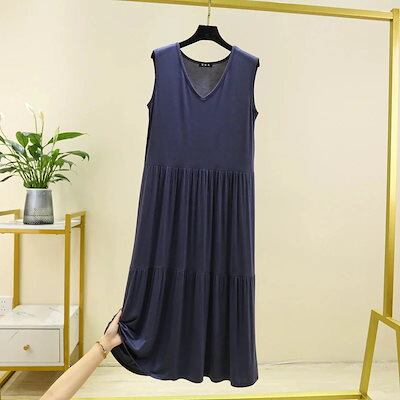 人气新作韓国ファッション キャミワンピース ワンピース 初秋 パジャマ ルームウェア Tシャツ パーティードレス パジャマ無地ノースリーブ トップス抜け感 ポケット ドロップショルダー 細見メガ割