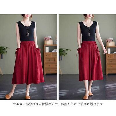 ワイドパンツレディースロングパンツ無地七分丈ポケット付きウエストゴム柔らかい涼しいゆったりシンプル大人脚夏用