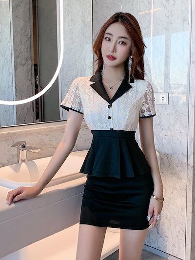 スーツセットアップユニフォーム エステ サロン通勤 エステ制服 レディース 女性 制服スカート おしゃれ 半袖 ジャケット2点セットシャツ+ズボン18w