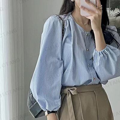 ロンT韓国ファッション【本日限定】 初秋長袖 気質 新作ストライプ シアーシャツ ブラウス レディース シフォン トップス インナー 薄手スーツジャケットカーディガン