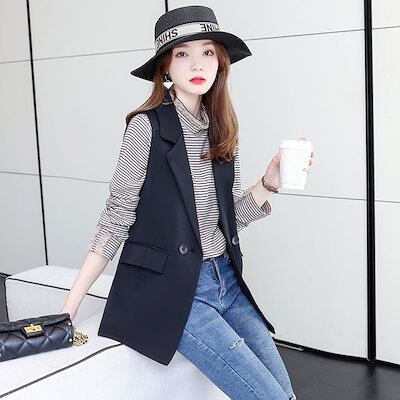 韓国ファッション 秋新作 トップス ベスト Vネック ノースリーブ ゆったり 細見え おしゃれ シンプル 着痩せ レディース お出かけ アウター レディース スーツジャケットメガ割