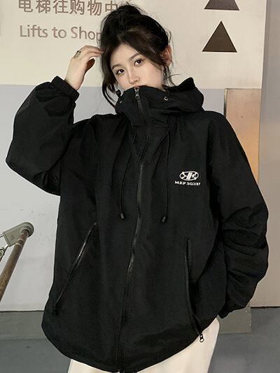 今年 秋冬 選べる2タイプ 厚手 中綿入り かわいい レディース フード付きアウターフーディーロゴブルゾン長袖シルエットトップスサイド冬カジュアルファッション系サイズお出かけフル丈トラック