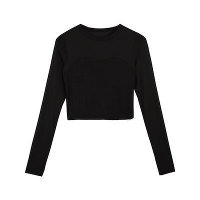 2024 春秋 韓国 女度を格上げ tシャツ ファッション トップス 薄手 韓国系 長袖 薄手フィット プリント レイヤード 重ね着 肌見せ 女っぽハイフレンチタイト丈 レディース T